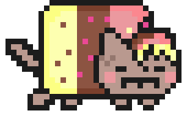 Neopolitan Nyan is inspired by Sad Nyan Cat. They are a traditional Nyan fused with a chocolatey-strawberry poptart. In their sprite, this poptart does not resemble the actual one as much in order to keep the neopolitan theme. They're socially awkward and conflicting, with three different Nyans sharing one body ruining the conversation. They are insecure about their performance in social situations, therefore they appear to be timid and avoidant.