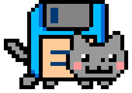 Nyan Floppy Disk Cat also known as Nyan Floppy Disk is a little known Nyan Cat that appeared on Nyan.cat. It was made by Chris Torres (prguitarman) himself and appeared on the 14th April 2015, but NOT as an April Fools Day Joke.