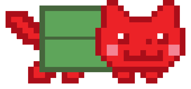 He is represented as an 8-bit red cat with pink color on his cheeks and dark red eyes. The body consists of two KitKat milk chocolate bars.