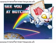 This Nyan has 2 versions in black and white. It is a panther with yellow eyes with a sidewinder missile mounted on its upper back. It has a bicolor blue trail; blue and cyan for its white version and light blue and blue for its black version. These Nyans are based off of the franchise Transformers: Shattered Glass and inspired by the official transformers toys site post for "BotCon" featuring a Nyan version of SG Ravage.